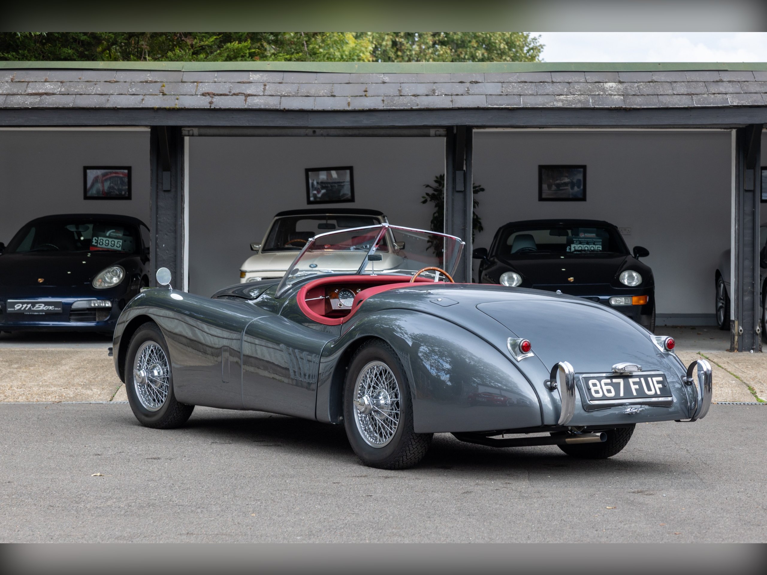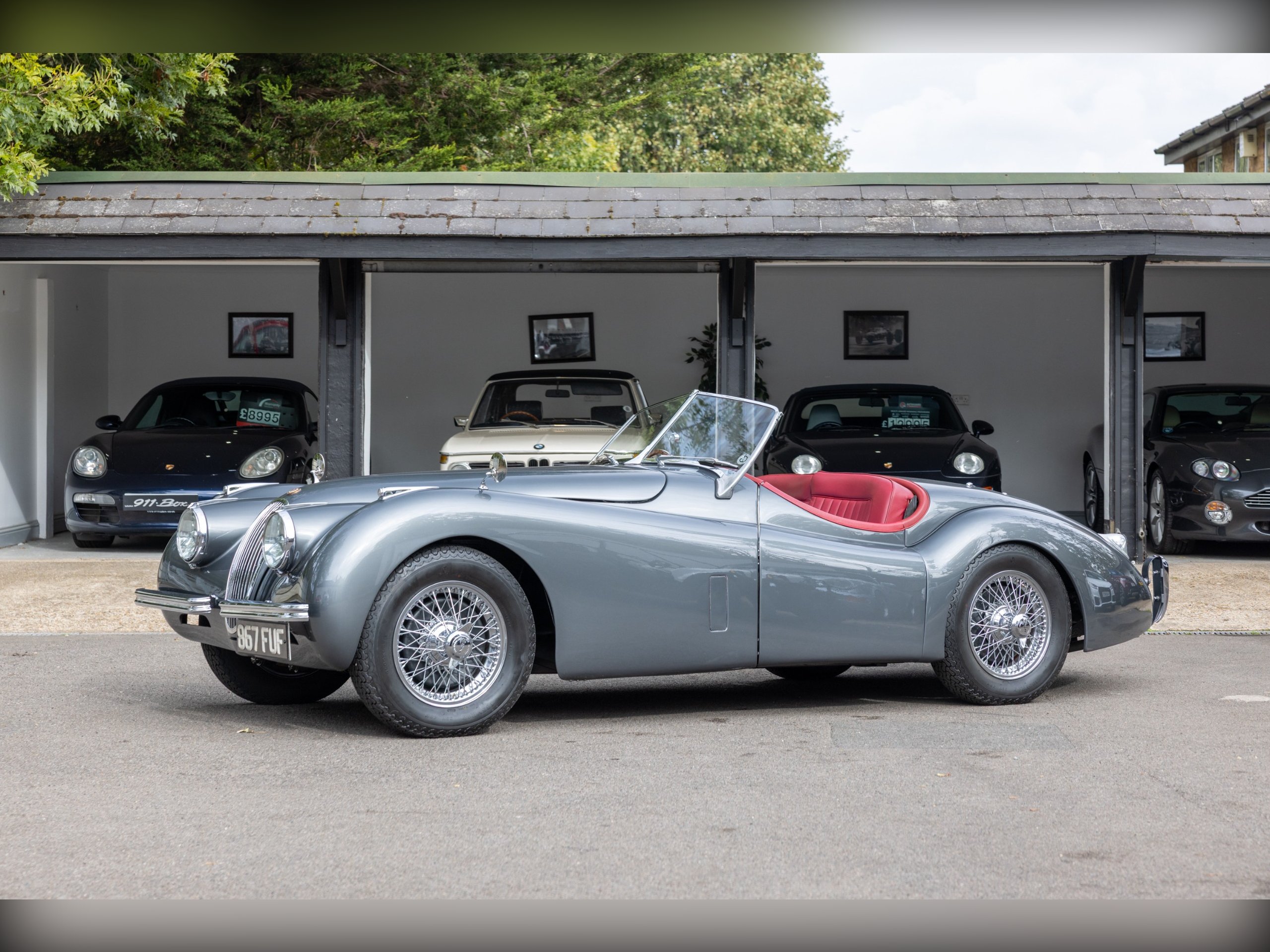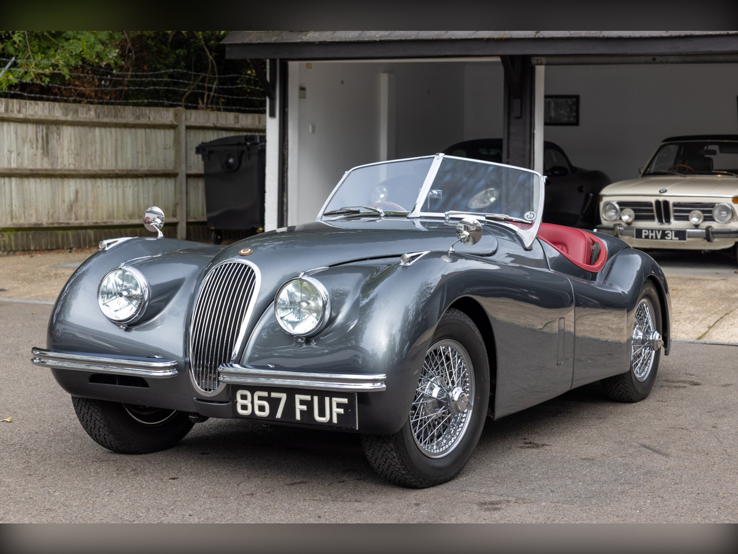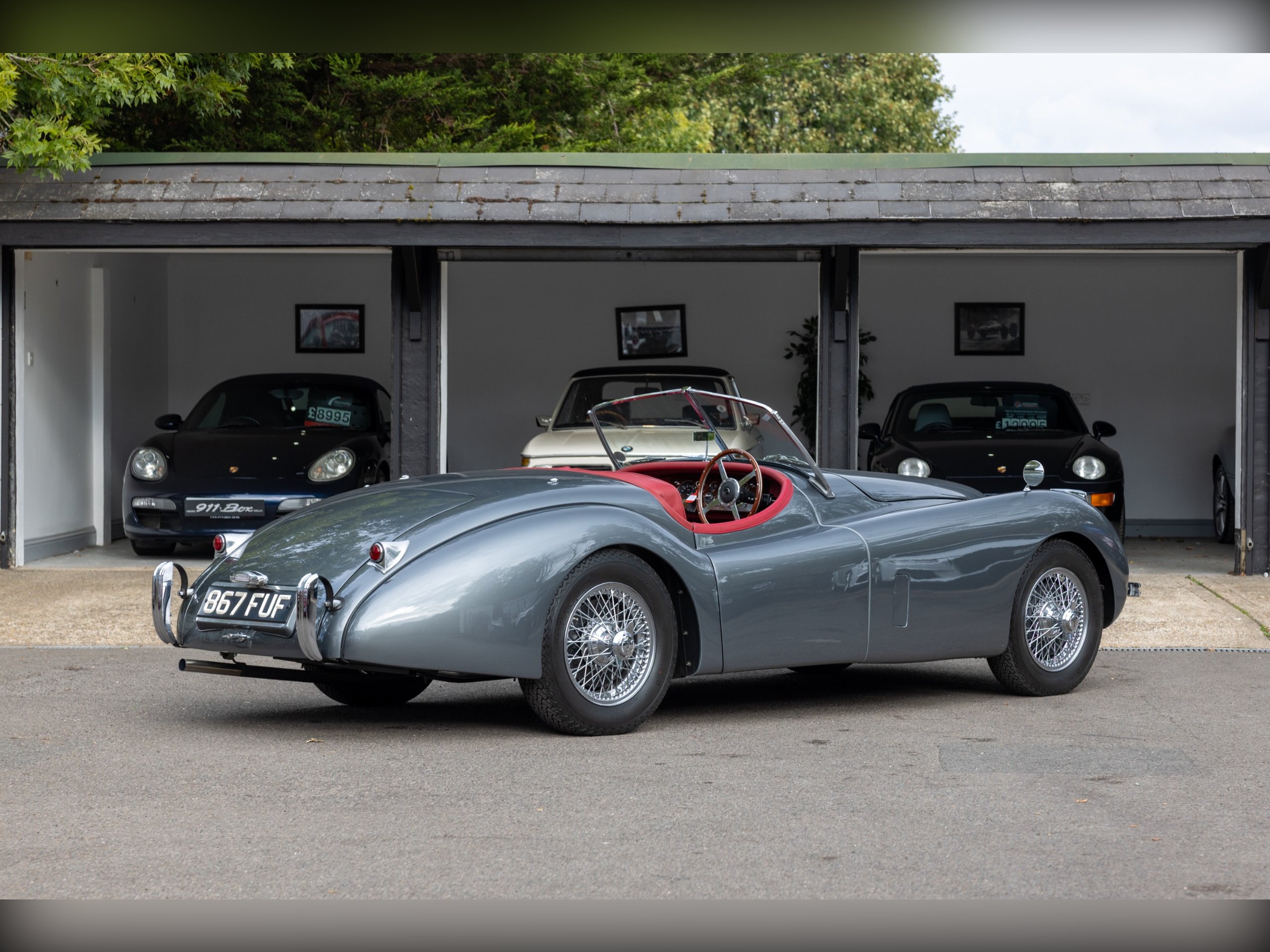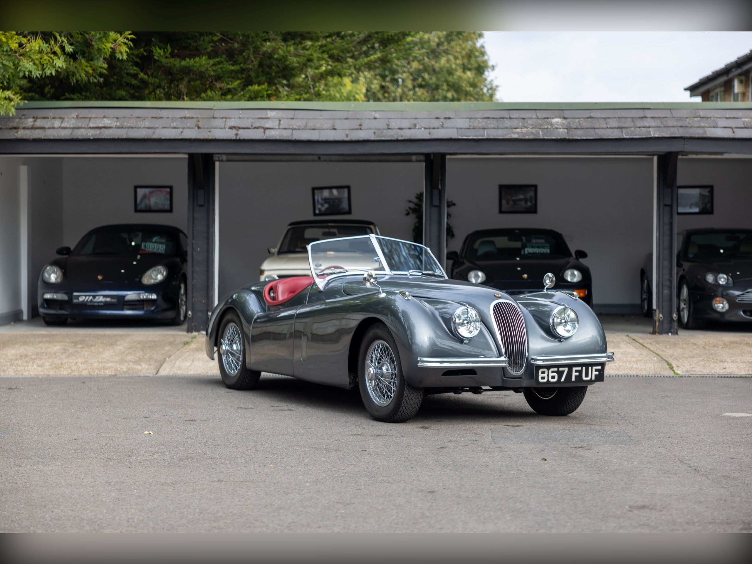 This beautiful Jaguar XK120 has an interesting history. As confirmed by the Jaguar Heritage Certificate, the car was one of 12 sent to Eire to be assembled, trimmed and painted to avoid heavy import duty, the term for these cars was CKD (Complete Knock Down). This car has had a colourful and well documented life, which includes Tullamore Whiskey owners and racing! Since, the car has undergone a full restoration at Cotswold Classic Car Restorations with well over £110,000 spent in 2023 with a fully rebuilt engine, 5 speed Supra gearbox, power steering fitted along with a full bare metal respray and re-trimmed interior, having only covered about 180 miles since the restoration. We have all of the wet weather gear along with the original steering wheel.