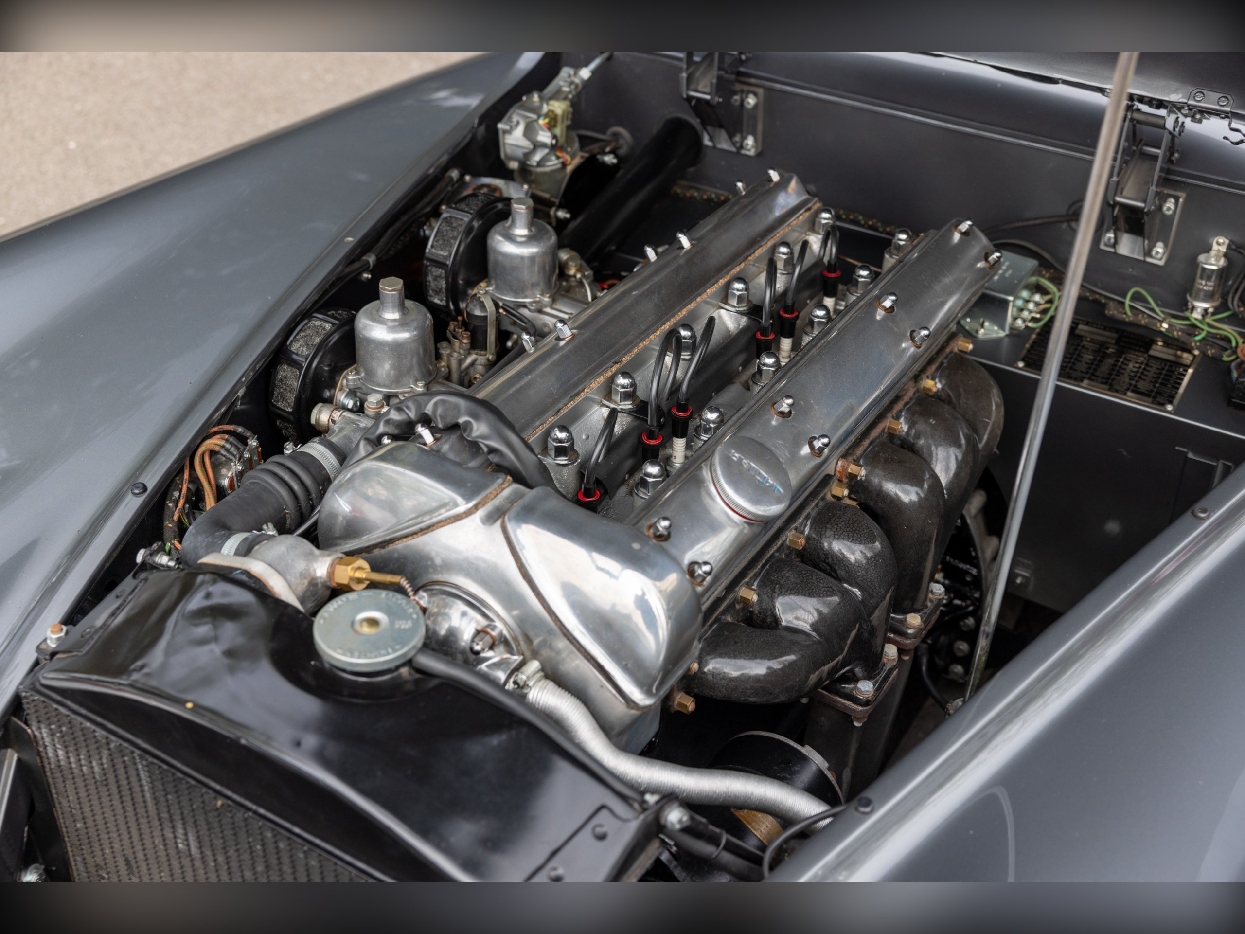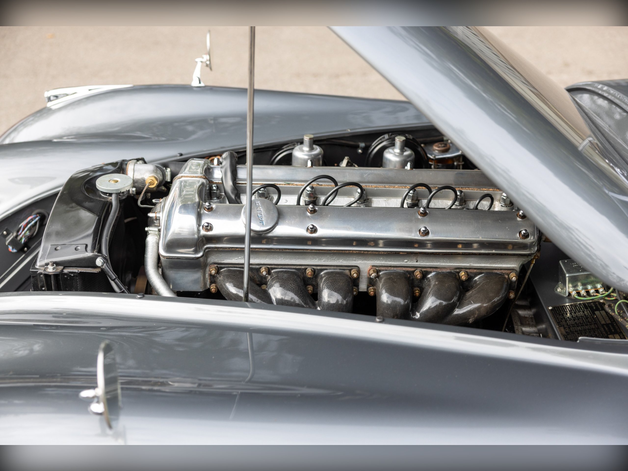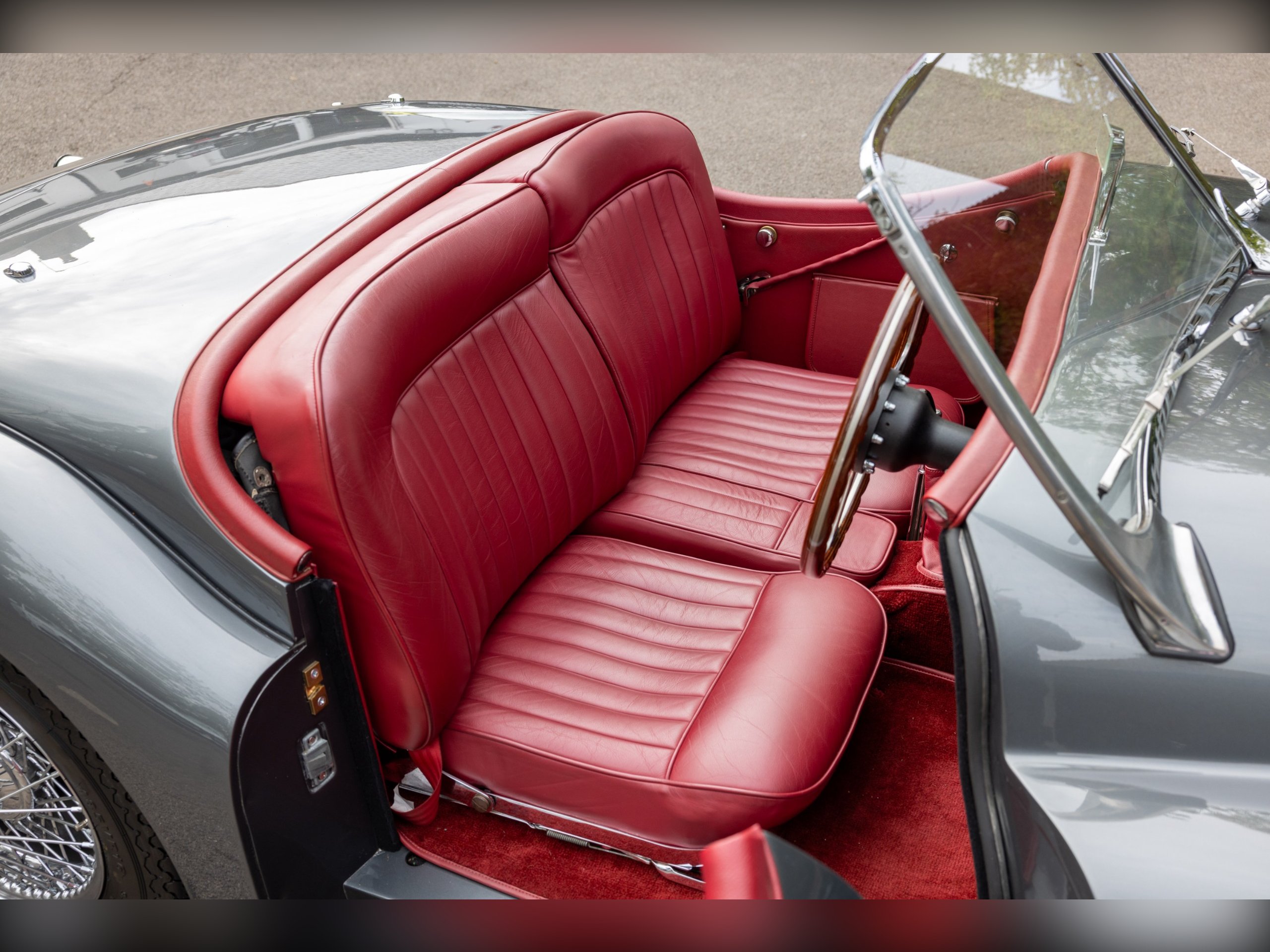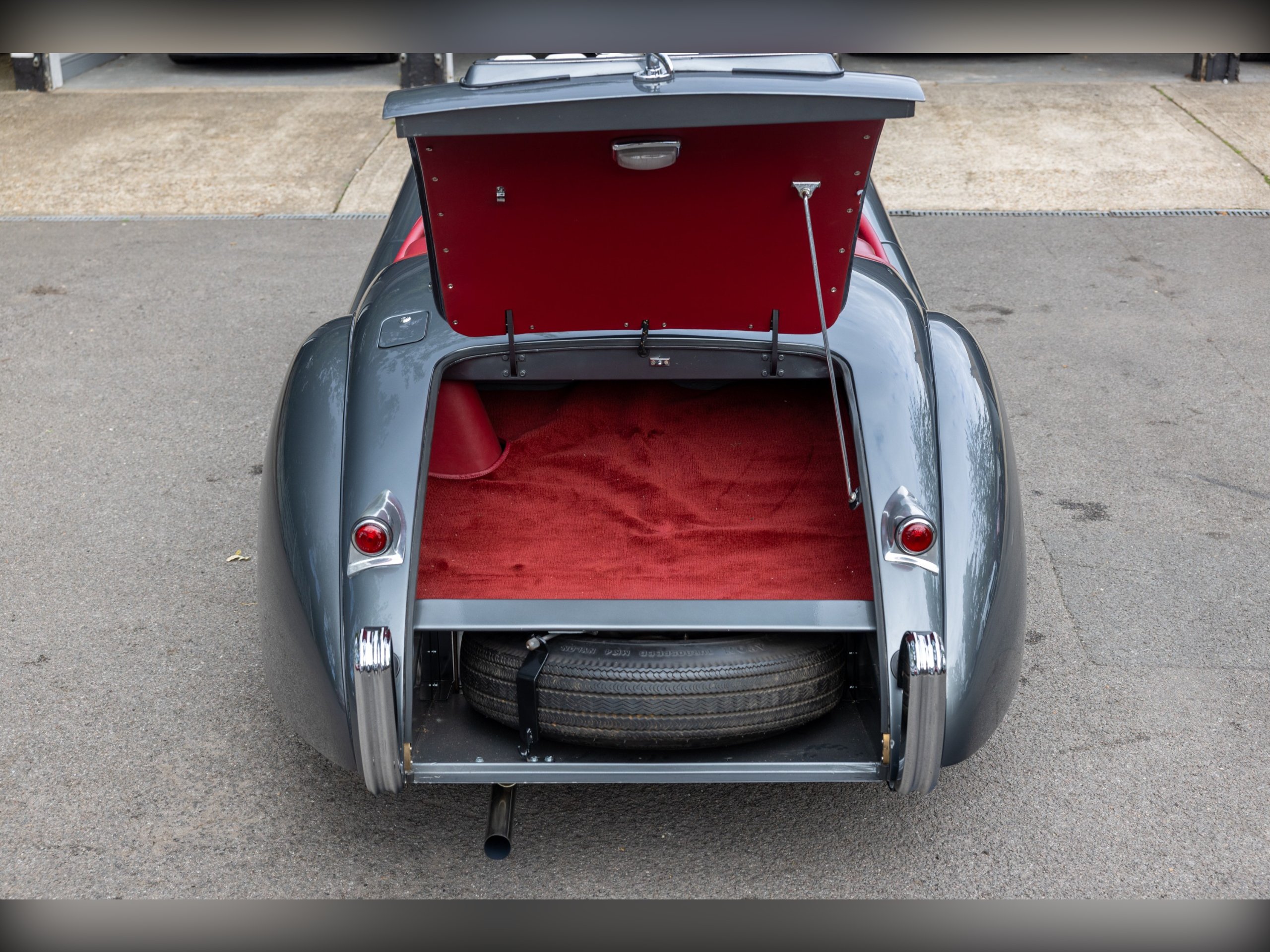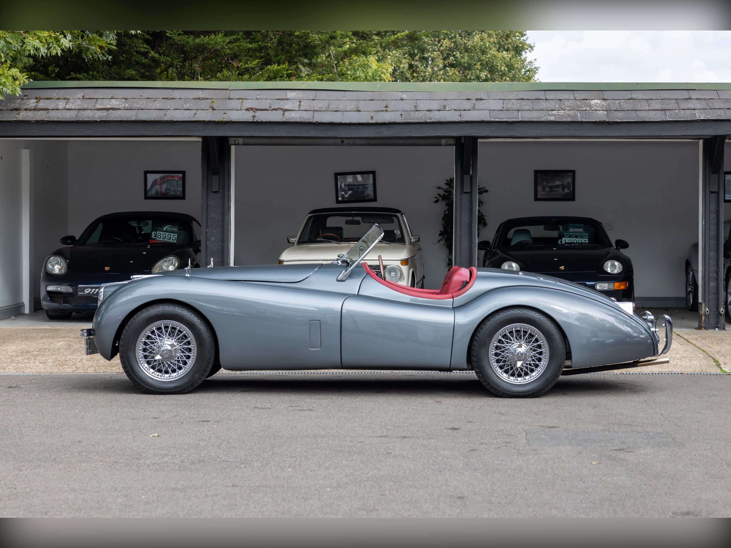 This beautiful Jaguar XK120 has an interesting history. As confirmed by the Jaguar Heritage Certificate, the car was one of 12 sent to Eire to be assembled, trimmed and painted to avoid heavy import duty, the term for these cars was CKD (Complete Knock Down). This car has had a colourful and well documented life, which includes Tullamore Whiskey owners and racing! Since, the car has undergone a full restoration at Cotswold Classic Car Restorations with well over £110,000 spent in 2023 with a fully rebuilt engine, 5 speed Supra gearbox, power steering fitted along with a full bare metal respray and re-trimmed interior, having only covered about 180 miles since the restoration. We have all of the wet weather gear along with the original steering wheel.