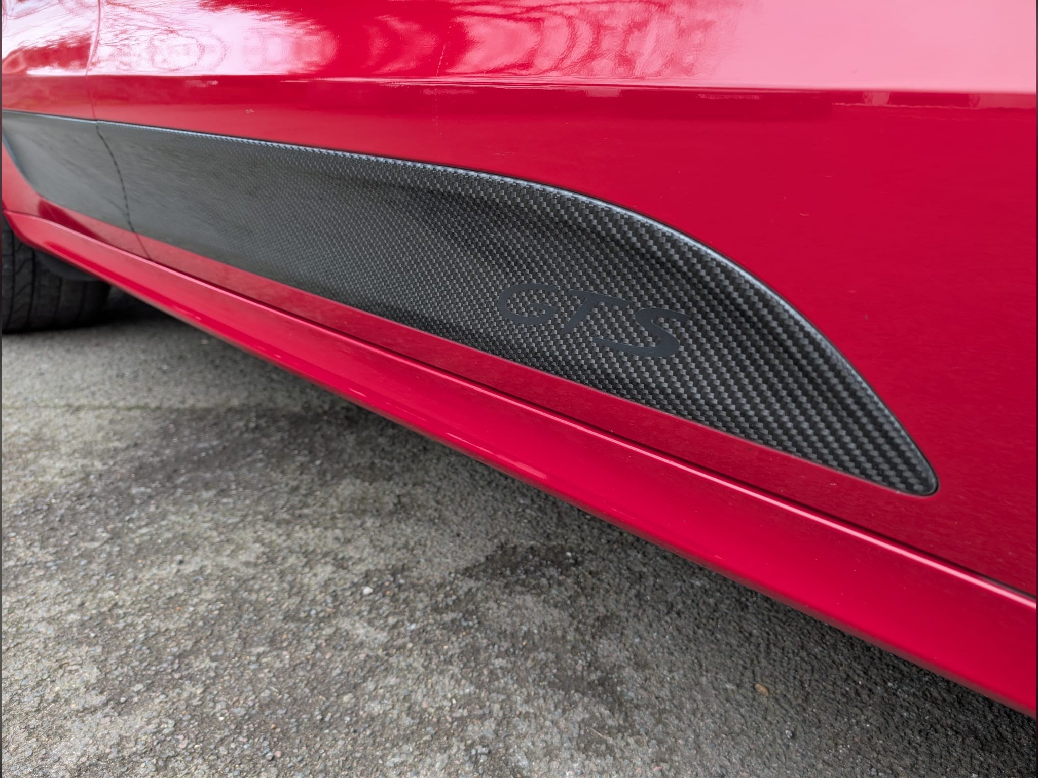 Inside, the cabin features the desirable GTS Leather Package with Carmine Red accents, complemented by carbon fibre interior trim and an Alcantara headlining, creating a wonderfully sporting yet refined environment. Comfort and technology features include the Panoramic Roof System, Bose surround sound system, Connect Plus, heated steering wheel, Power Steering Plus, Speed Limit Indicator, Lane Change Assist, Light Comfort Package, PDLS Plus headlights, heat and noise insulating glass, side airbags in the rear compartment, and the larger 75-litre fuel tank.