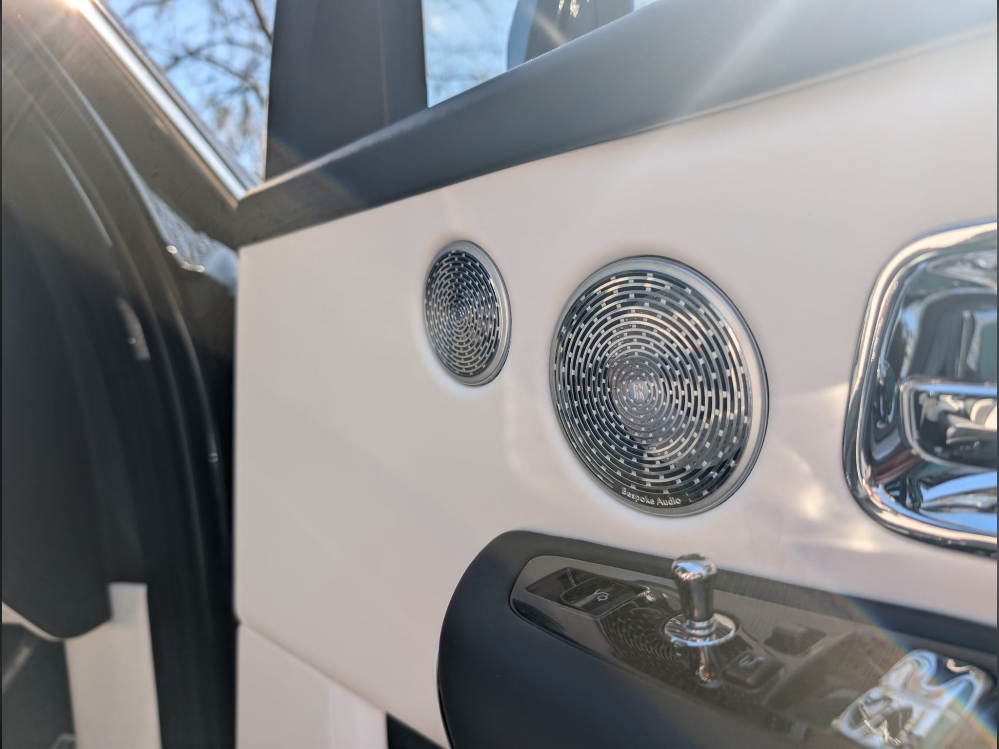 The interior is a masterclass in bespoke craftsmanship, specified in an elegant combination of Black and Arctic White leather, creating a striking yet timeless cabin environment. As expected of a Rolls-Royce, this example has been configured to an exceptionally high standard, featuring a wealth of bespoke options and refinements. These include lambswool floor mats, RR monograms embroidered to all headrests, Spirit of Ecstasy embossing to the doors, and rear comfort headrest cushions, all contributing to an atmosphere of unrivalled luxury.